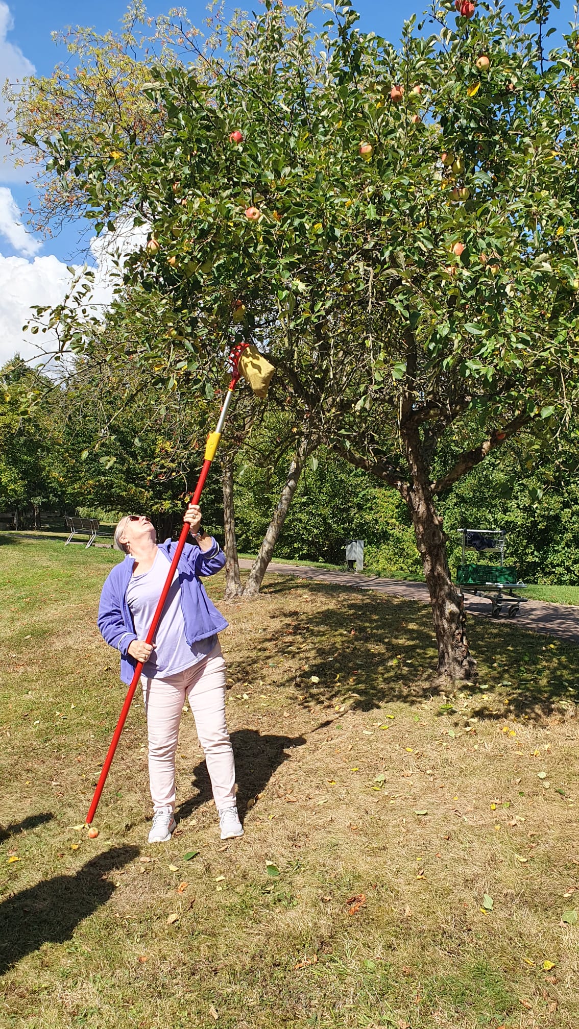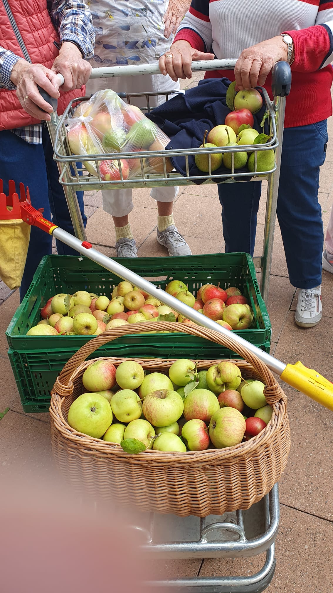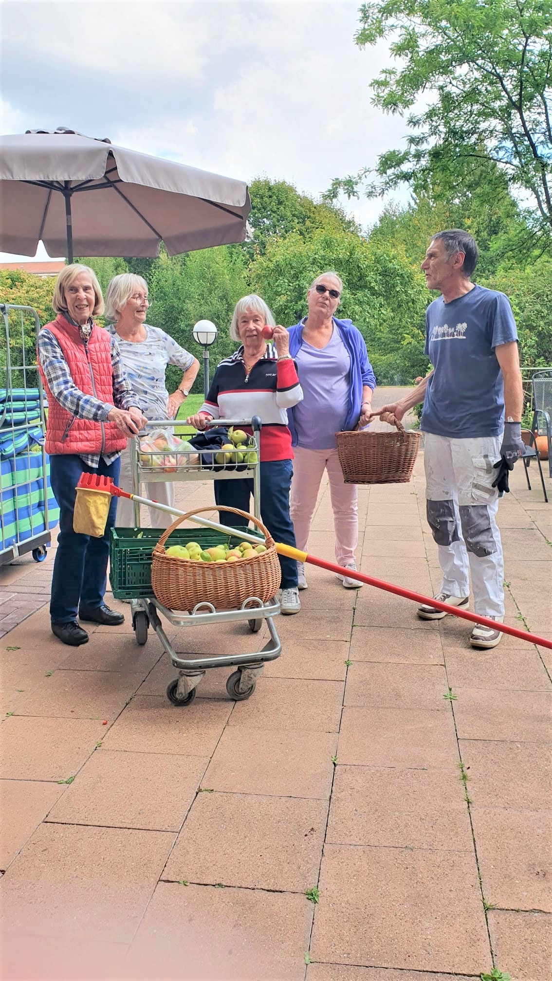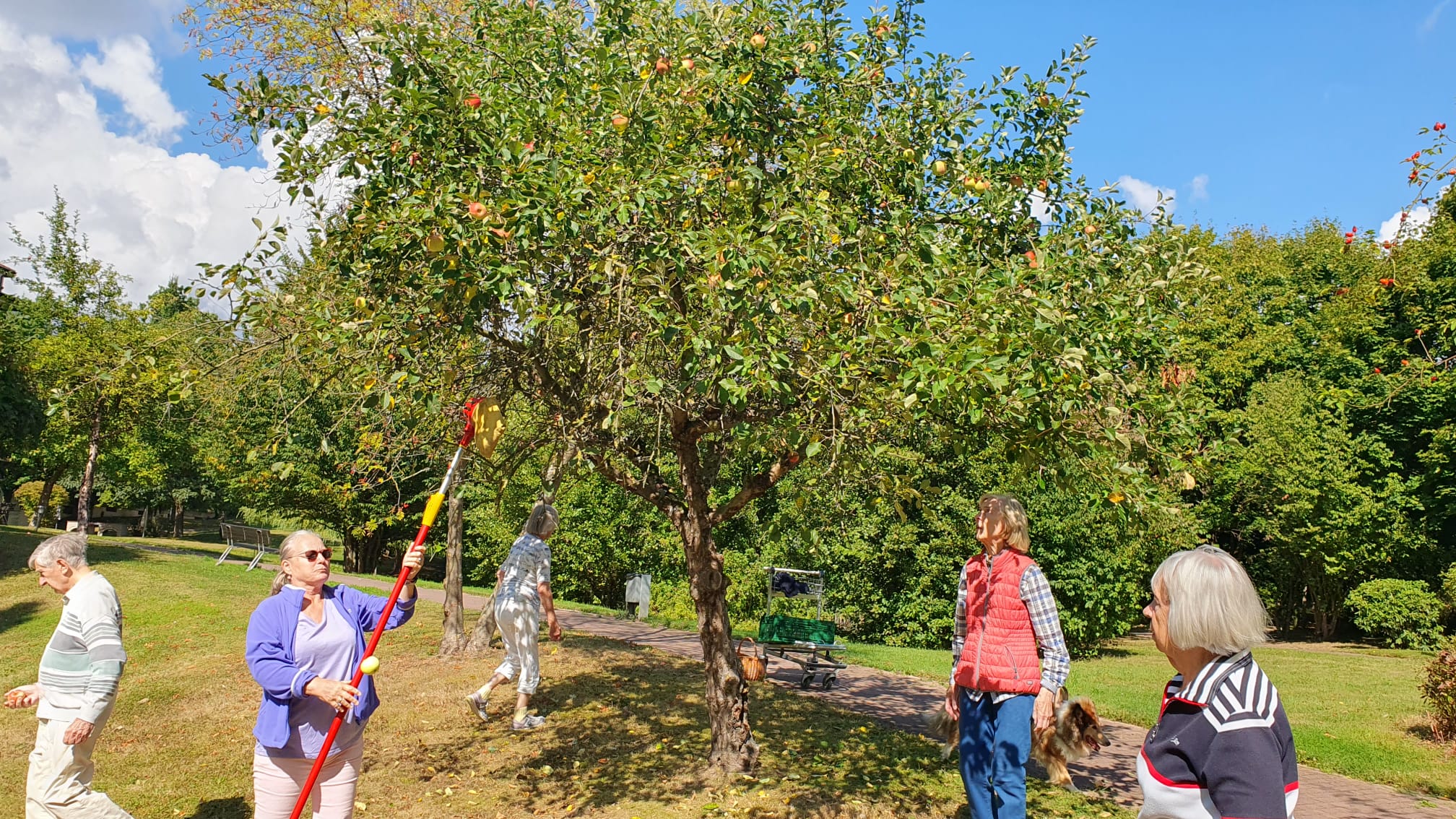 Wir haben die letzten lauen Herbsttage dazu genutzt, den Apfelbaum in unserem Residenzpark zu plündern. 🌳 Das geerntete Obst haben wir dann zu feinen Muffins, Kuchen  und Säften verarbeitet. 🍹🥧 Dazu hat unsere liebe Karen vom Sozialkulturellen Dienst Gedichte und Geschichten über den Apfel vorgelesen. Wir sind total im Apfel-Fieber! 🍏🍎